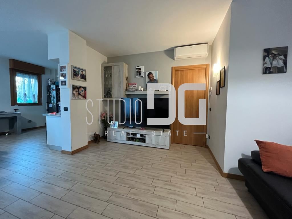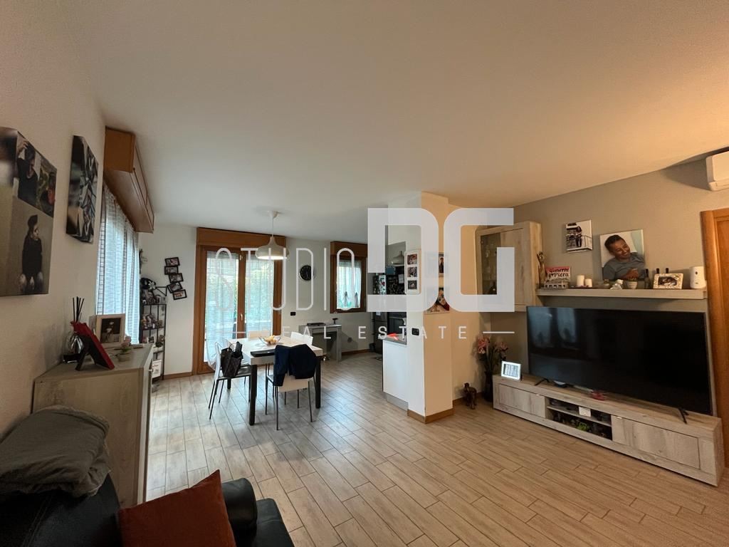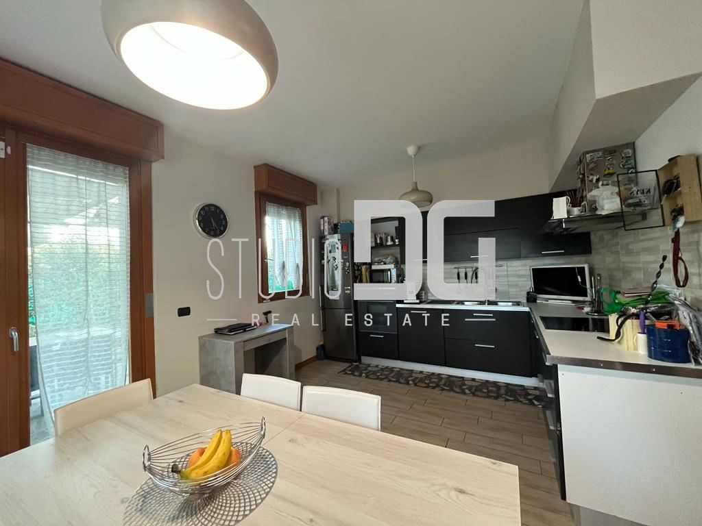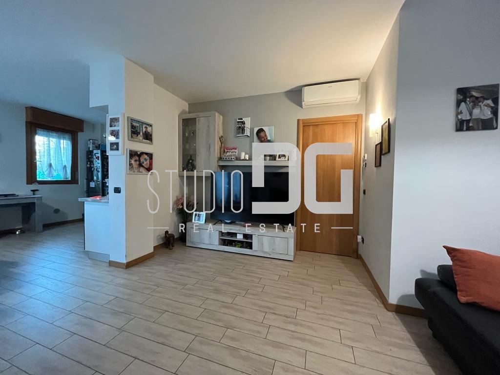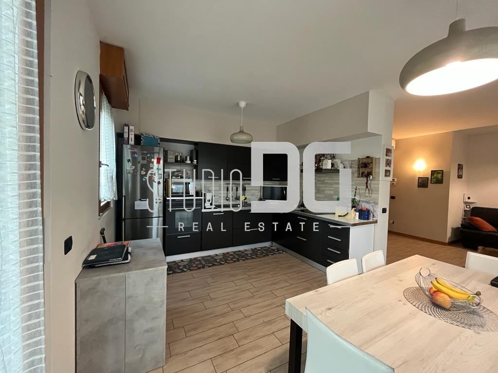 Gli interni sono ben distribuiti e valorizzati da riscaldamento a pavimento, che garantisce comfort abitativo e ottima efficienza energetica (Classe B). Si compone di ingresso, cucina a vista, tre camere e due bagni. La soluzione è completata da cantina e box singolo.