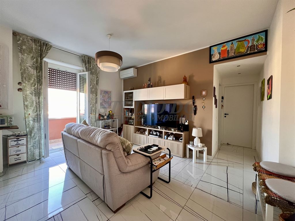 L’appartamento, completamente ristrutturato, è composto da ingresso su ampio soggiorno, cucina a vista con accesso al balcone, camera matrimoniale e bagno finestrato con box doccia.