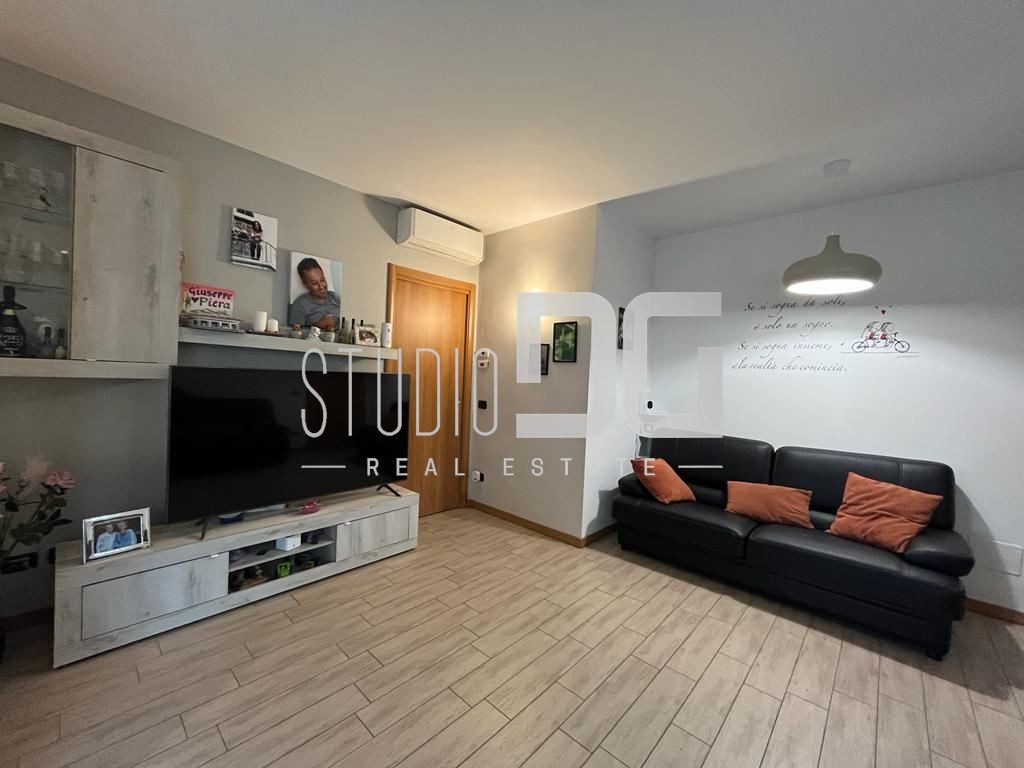 Gli interni sono ben distribuiti e valorizzati da riscaldamento a pavimento, che garantisce comfort abitativo e ottima efficienza energetica (Classe B). Si compone di ingresso, cucina a vista, tre camere e due bagni. La soluzione è completata da cantina e box singolo.